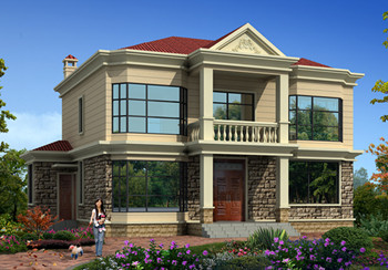 圖紙介紹:110平方米新農村實用現代的二層建筑設計圖紙帶外觀圖11X10,這款別墅占地面積110平米,戶型方正不大不小,別墅的外觀主要用米黃色和乳白色面磚裝飾,讓人一眼就能感受到別墅的豪華程度,二層陽臺處設計有葫蘆蹲,起到了很好的防護作用,同時也美觀,紅色屋檐搭配十分喜慶。