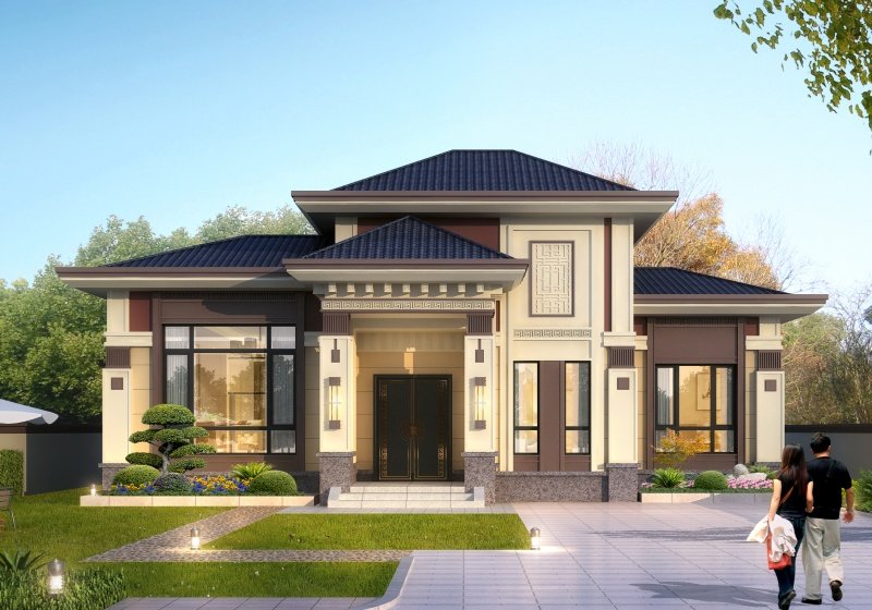 圖紙介紹:本方案三個戶型,B、C戶型介紹及戶型展示往下拉。歐式二層別墅設計圖,帶陽光房設計,時尚美觀還很實用,別墅外型設計是現在非常流行的簡歐風格, 質樸,簡約,優雅和諧,非常現代時尚。外墻黃色、米黃色,棕色噴漆巧妙搭配,色澤自然,富有質感,瞬間凸顯建筑的檔次,咖色線條和窗套進行裝飾,和米黃色外墻形成強烈的對比,和諧美觀;屋頂坡屋頂采用藍色琉璃瓦,端莊大氣,陽光下熠熠生輝,非常好看;方形羅馬柱更有線條和層次感,設計壁燈,彰顯生活檔次。好看又實惠。