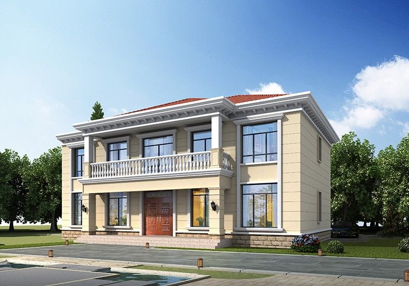 • 四開間2層別墅設(shè)計(jì)圖,外觀圖配色清新淡雅,占地200平米