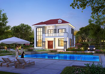 二層別墅戶型:起居室、臥室(帶衛生間)、臥室x2、書房、陽臺、陽光房(可以作為露臺);