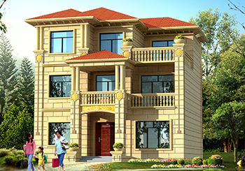 第三套:簡歐式大氣型二層別墅設計圖以及戶型圖占地面積:11.3m*9m,100平方米左右 建筑高度:9.9米(含屋頂) 設計功能: 一層戶型:客廳、餐廳 、廚房、臥室、儲藏室、衛(wèi)生間 二層戶型:家庭室、臥室x4、書房、衛(wèi)生間、陽臺 這款別墅戶型方正不大不小,別墅的外觀主要用米黃色和乳白色面磚裝飾,讓人一眼就能感受到別墅的豪華程度,二層陽臺處設計有葫蘆蹲,起到了很好的防護作用,同時也美觀,紅色屋檐搭配十分喜慶。