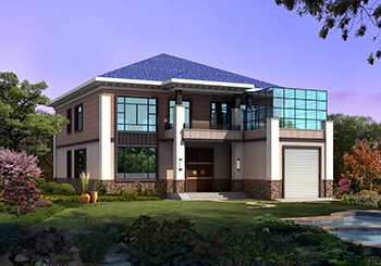 平頂二層七字形小別墅設(shè)計(jì)圖紙及效果圖片
