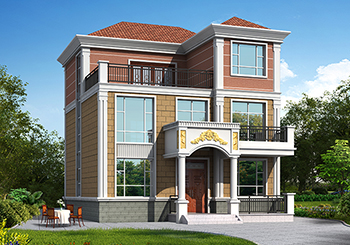 • 歐式農(nóng)村三層小別墅設(shè)計(jì)圖,占地120平米,客廳中空,空間利用率高