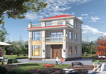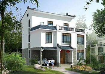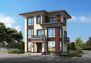 圖紙介紹:130平新農村三層房屋設計圖紙,預算30萬以內,蓋房推薦,別墅為中式風格,外觀造型美觀大方,色彩清新淡雅,富有時代的韻味,配色溫暖,現代與中式元素完美融合,給人一種溫馨舒適家的感覺。別墅帶有大露臺和涼亭,多臥室,多窗的設計采光通透,蓋一棟就是享受