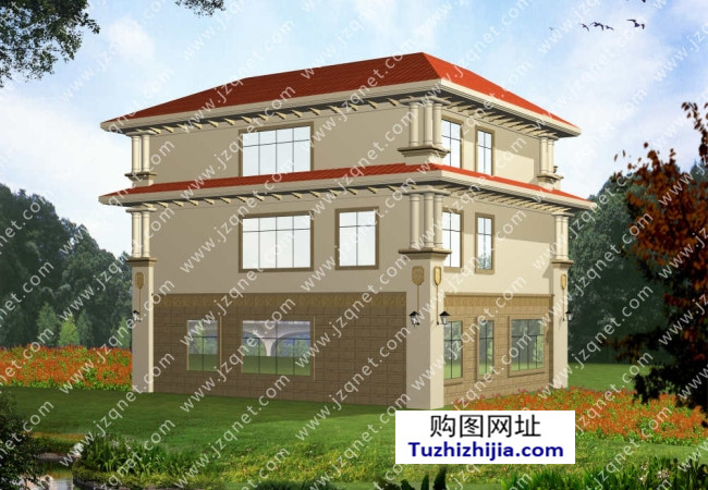 建筑總面積/總層高:413平米(不含入戶平臺、陽臺、露臺)/總高12米,屋檐口高10.5米