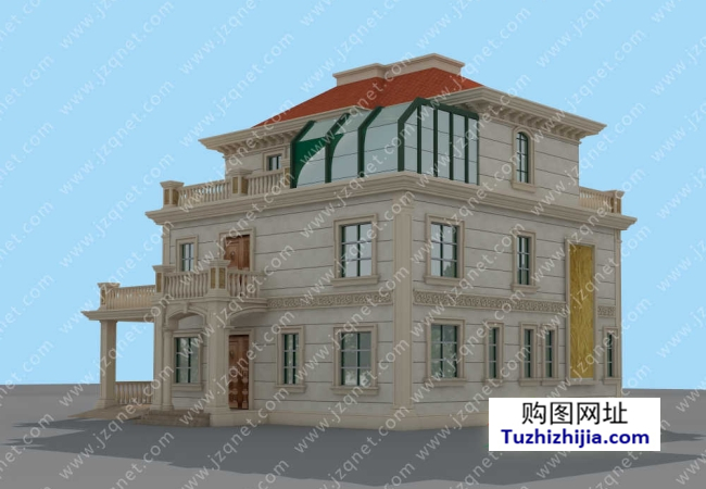 建筑總面積/總層高:549平米(不含入戶平臺、陽臺、露臺)/總高13米,屋檐口高9.7米