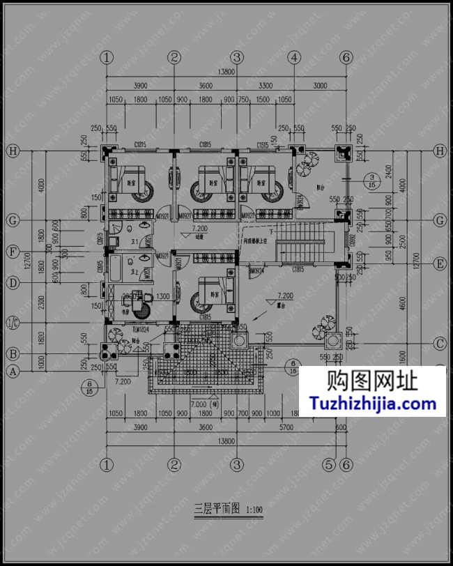 占地尺寸:面寬13.8米x進(jìn)深12.7米