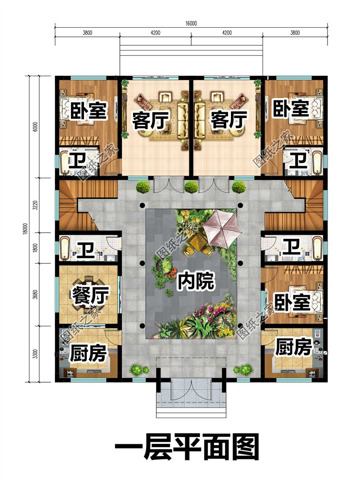 二層雙拼四合院別墅設計圖,農村倆兄弟照樣建四合院