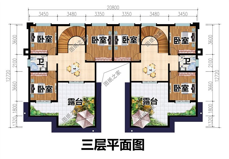 占地面積:20.8m*13.84m,205.76平方米,單戶102.88平左右;