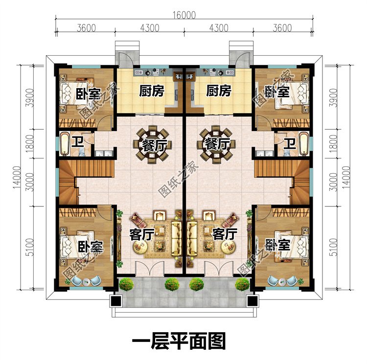 占地面積:16m*14m,217.28平方米,單戶108.64平左右;