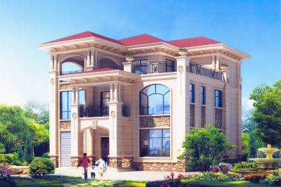 古典韻味的四層房屋設計圖,占地140平米左右,這樣的外觀配上紅