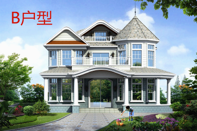 50萬左右農村豪華二層別墅設計圖 ,大廳中空,外觀精美