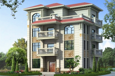 新農村140平米樓房圖四層獨棟別墅設計圖,簡歐外觀風格設計