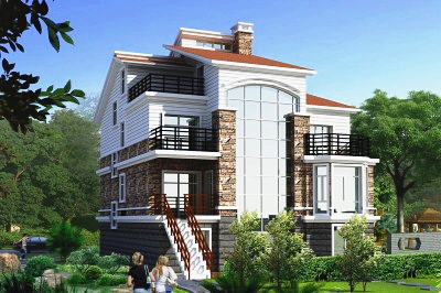 古典韻味的四層房屋設計圖,占地140平米左右,這樣的外觀配上紅