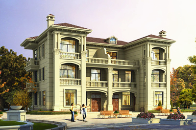簡歐復式四層別墅房屋設計圖,外觀圖高端、大氣