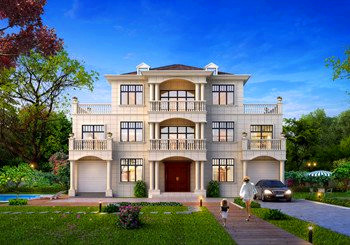 簡歐復式四層別墅房屋設計圖,外觀圖高端、大氣