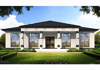 中式簡約風格七字形一層平房設計圖紙及外觀圖