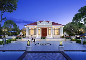 圖紙介紹:農村帶閣樓的一層半平房設計圖,住著比樓房還舒適,看了就想建,溫馨又舒適的戶型,立面灰色外墻磚與白色漆的巧妙搭配,非常大氣,且具質感。屋頂為藍色的坡屋頂,層次分明,使立面錯落有致,門廳旁邊的連廊,使別墅的功能更休閑,更舒適。