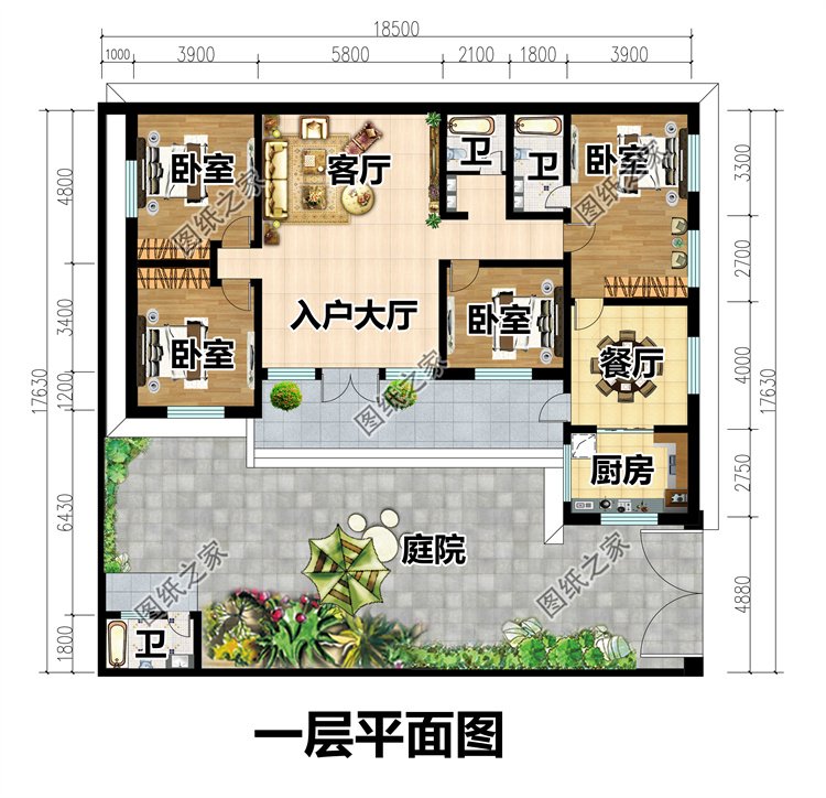 面寬17米一層大平層自建房設(shè)計(jì)圖,戶(hù)型實(shí)用,不用爬樓