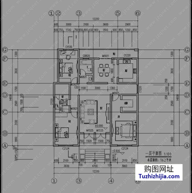 建筑總面積/總層高:162平米(不含入戶平臺、陽臺、露臺)/總高6.5米,屋檐口高3.6米