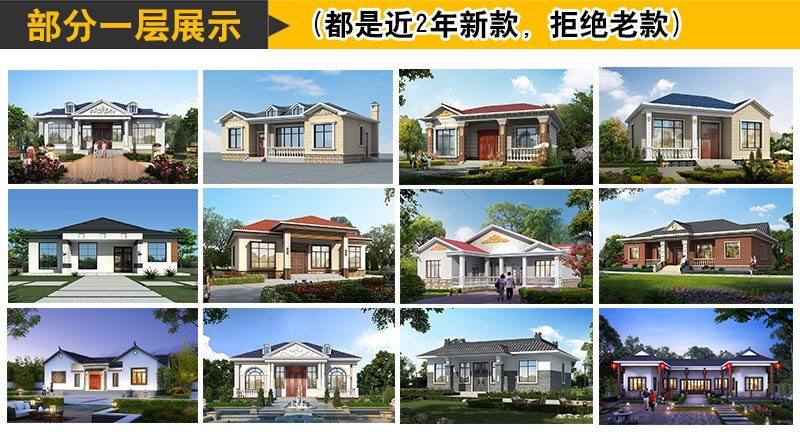 農村200平一層別墅房屋設計圖,外觀圖片時尚、漂亮